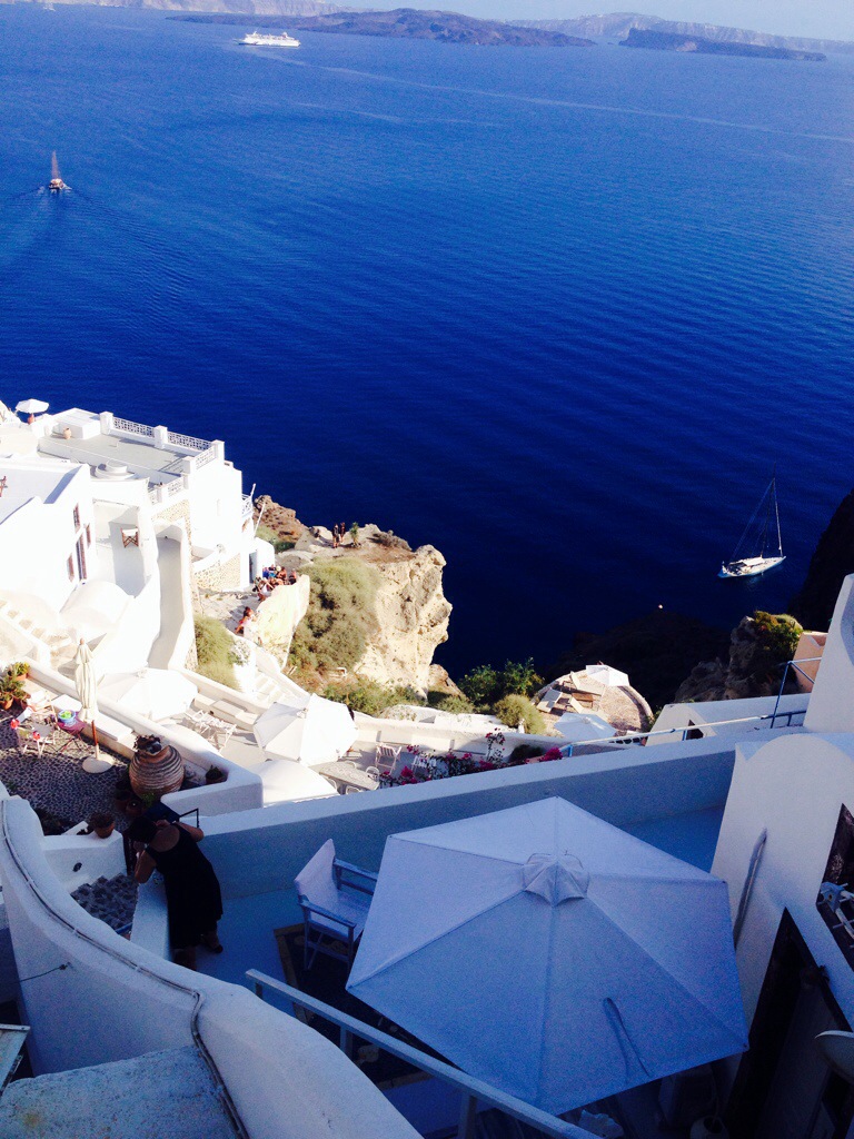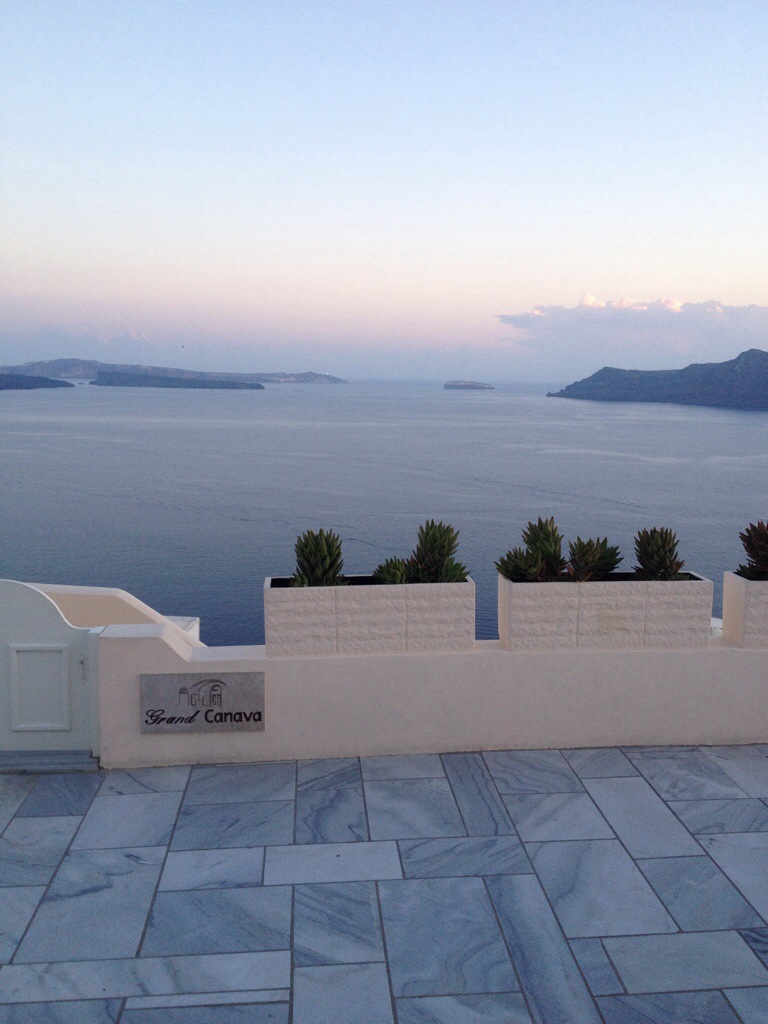Arrived in Santorini off the ferry from Naxos. Just a 2 hour hop on the Blue Star. 2 buses later and I am in Oìa … and in a Youth hostel! As you can see by the photo it has a cute courtyard. Sleeping in a mixed dorm will be interesting though!!