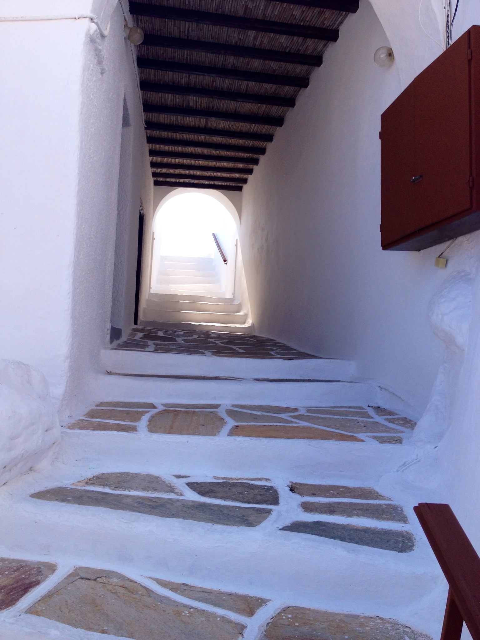 So 2 days are enough here. Don’t get me wrong its a lovely island but too commercial for me. I went exploring today (after I did the beach) as I wanted to see if there was more to Ios than beautiful beaches and great night life, so I went up into the centre of the town and dug deep into the depths of it. I wanted to experience what the locals experience and I think I did pretty much that! I found the local church (which is always a good starting point) and went from there. I discovered that there was more to Ios, you just have to look for it. My photos show one of the churches and the tiny narrow streets which are shaded from the sun most of the time.