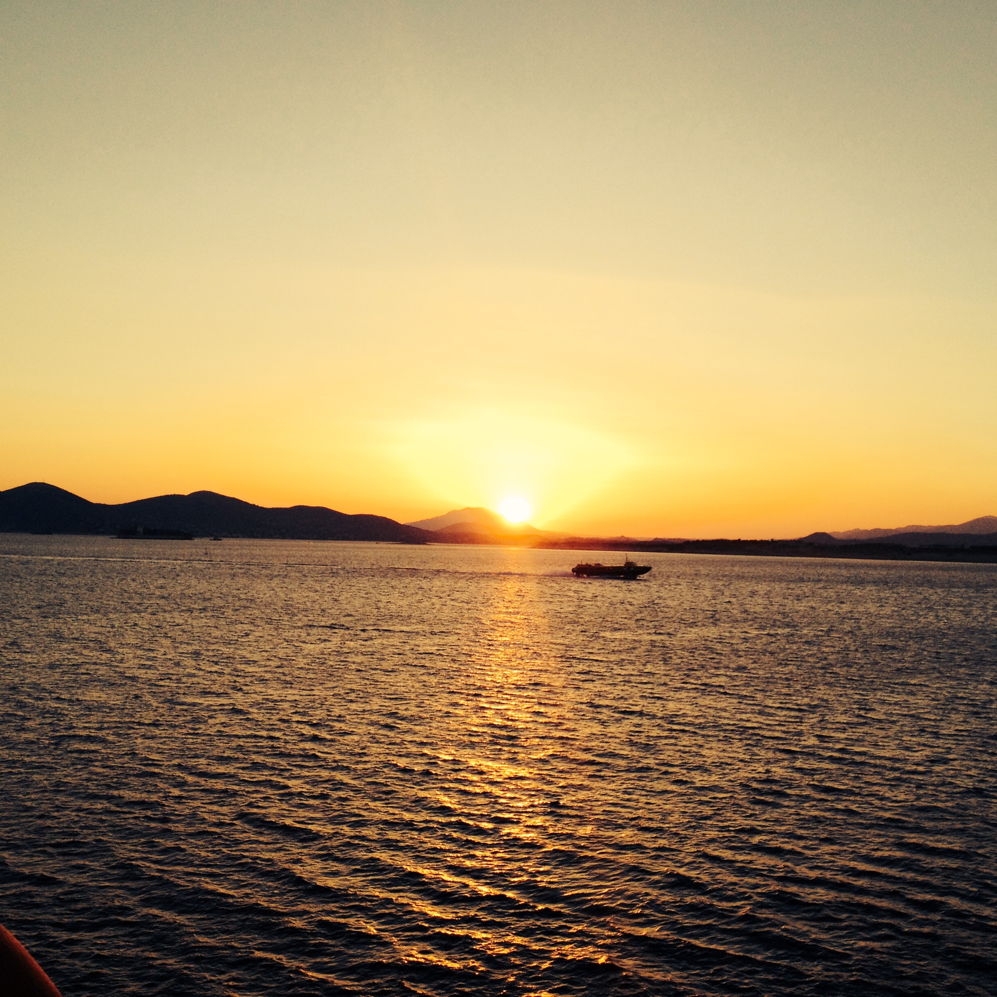 The sunset photo was taken from the ferry as we approached Athens. Right, gonna hit that bed now.