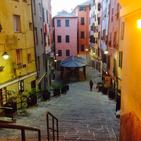 After a 3 and 1/2 hour train ride ( spending 1and 1/2 on the platform in Milan) I arrived in Genova. Found a hotel on Booking.com but failed miserably in following directions…. female brain and 2 and 1/2 hours later (yeah, you better believe it) I found Hotel Bologna up an alley way! Nice though! After a cold shower, pizza, coffee and 2 very large glasses of red wine I was ready to rock n roll! Here for 2 nights so will explore more tomorrow. Beach me thinks!