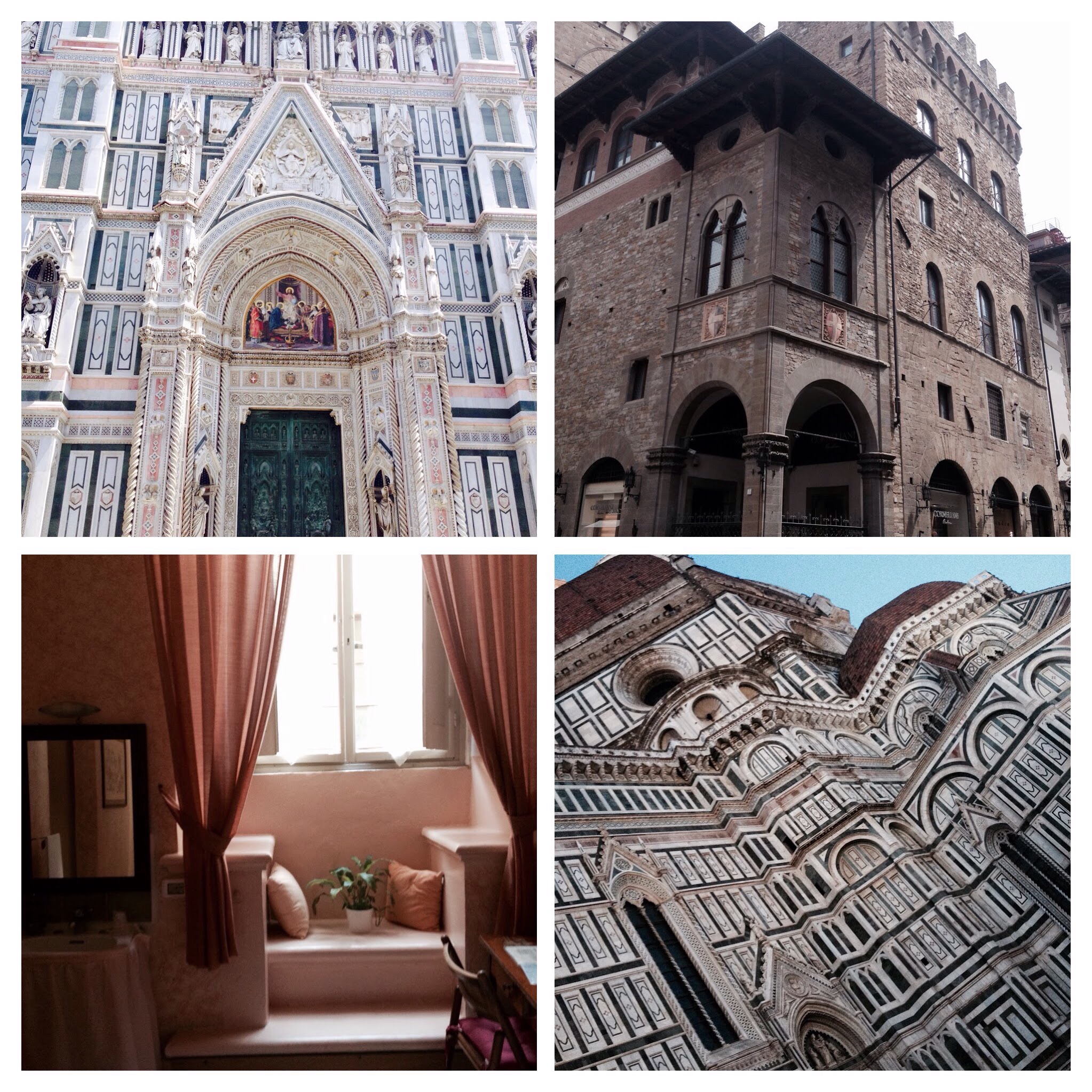 Just over 1 hour by train (a double decker one too …. had to go upstairs…. the child in me) I arrived in Florence. A 5 minute bus ride into the historic district of Flo (or Firenze) as it’s known and I was at Hotel Orchidea. What a fantastic choice I made too! Forget having to share a bathroom… this lovely 3 storey building with it’s quirky rooms was nothing short of lovelyness! Just had to show you my window seat!